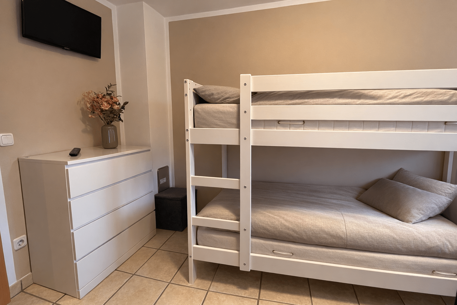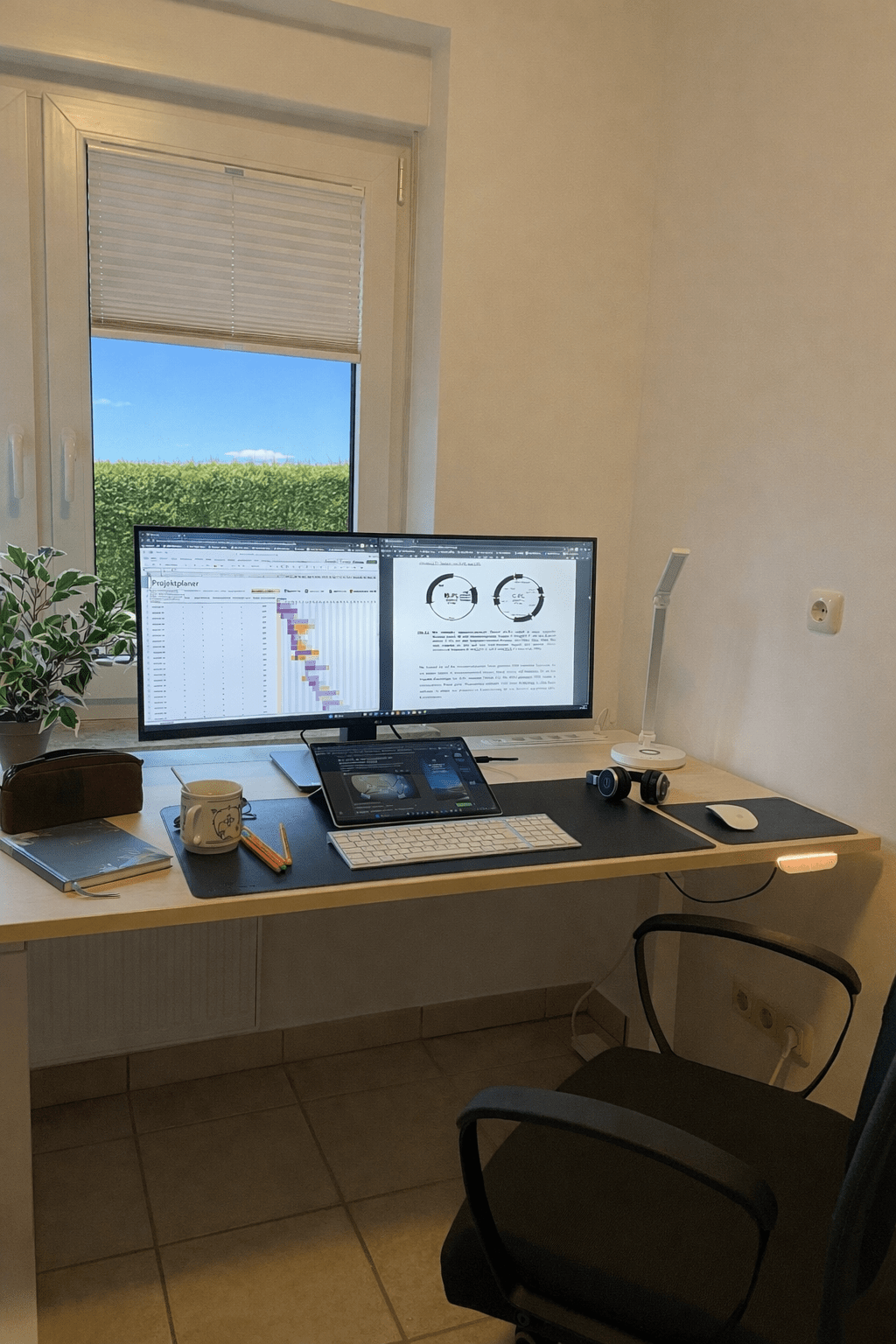 Fliegergitter und Außenjalousien an allen Fenstern.